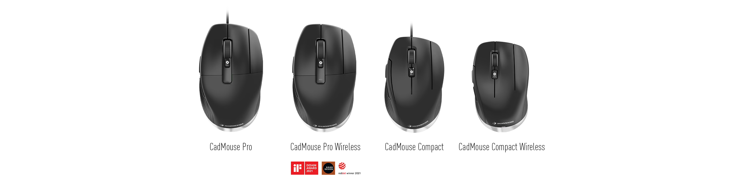 CadMouse je dostupan u različitim veličinama, s kabelom ili bežično.